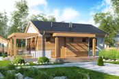 Graficzne opracowanie rzutów poglądowych widocznych na karcie projektu zostało wykonane przez Extradom.pl. Prezentowane przez Extradom.pl wizualizacje wykonane zostały przez autora projektu i należy poczytywać je jedynie za przykład i propozycję wykończenia, wizję architektoniczną autora projektu. Ostateczne wykończenie budynku może nastąpić na wiele sposobów. Szczegółowe rozwiązania zastosowane w oferowanej dokumentacji - w tym również ilość, lokalizacje i wygląd okien, drzwi, kominów - mogą w niewielkim stopniu różnić się od prezentowanej wizualizacji budynku.