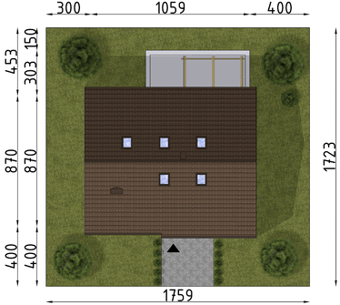 Graficzne opracowanie rzutów poglądowych widocznych na karcie projektu zostało wykonane przez Extradom.pl. Prezentowane przez Extradom.pl wizualizacje wykonane zostały przez autora projektu i należy poczytywać je jedynie za przykład i propozycję wykończenia, wizję architektoniczną autora projektu. Ostateczne wykończenie budynku może nastąpić na wiele sposobów. Szczegółowe rozwiązania zastosowane w oferowanej dokumentacji - w tym również ilość, lokalizacje i wygląd okien, drzwi, kominów - mogą w niewielkim stopniu różnić się od prezentowanej wizualizacji budynku.