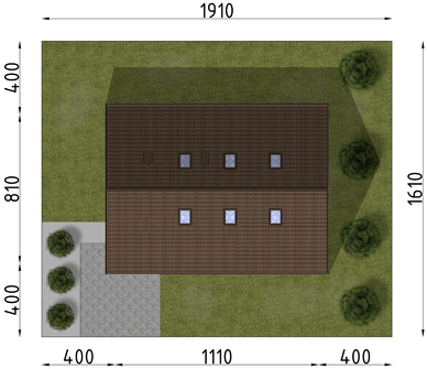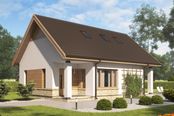 Graficzne opracowanie rzutów poglądowych widocznych na karcie projektu zostało wykonane przez Extradom.pl. Prezentowane przez Extradom.pl wizualizacje wykonane zostały przez autora projektu i należy poczytywać je jedynie za przykład i propozycję wykończenia, wizję architektoniczną autora projektu. Ostateczne wykończenie budynku może nastąpić na wiele sposobów. Szczegółowe rozwiązania zastosowane w oferowanej dokumentacji - w tym również ilość, lokalizacje i wygląd okien, drzwi, kominów - mogą w niewielkim stopniu różnić się od prezentowanej wizualizacji budynku.