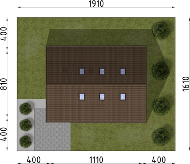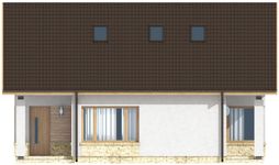 Graficzne opracowanie rzutów poglądowych widocznych na karcie projektu zostało wykonane przez Extradom.pl. Prezentowane przez Extradom.pl wizualizacje wykonane zostały przez autora projektu i należy poczytywać je jedynie za przykład i propozycję wykończenia, wizję architektoniczną autora projektu. Ostateczne wykończenie budynku może nastąpić na wiele sposobów. Szczegółowe rozwiązania zastosowane w oferowanej dokumentacji - w tym również ilość, lokalizacje i wygląd okien, drzwi, kominów - mogą w niewielkim stopniu różnić się od prezentowanej wizualizacji budynku.