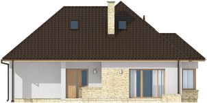 Graficzne opracowanie rzutów poglądowych widocznych na karcie projektu zostało wykonane przez Extradom.pl. Prezentowane przez Extradom.pl wizualizacje wykonane zostały przez autora projektu i należy poczytywać je jedynie za przykład i propozycję wykończenia, wizję architektoniczną autora projektu. Ostateczne wykończenie budynku może nastąpić na wiele sposobów. Szczegółowe rozwiązania zastosowane w oferowanej dokumentacji - w tym również ilość, lokalizacje i wygląd okien, drzwi, kominów - mogą w niewielkim stopniu różnić się od prezentowanej wizualizacji budynku.