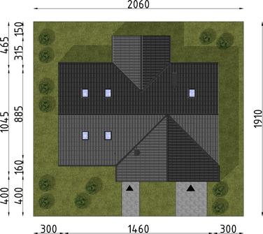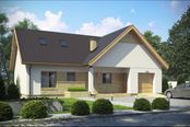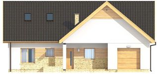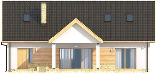 Graficzne opracowanie rzutów poglądowych widocznych na karcie projektu zostało wykonane przez Extradom.pl. Prezentowane przez Extradom.pl wizualizacje wykonane zostały przez autora projektu i należy poczytywać je jedynie za przykład i propozycję wykończenia, wizję architektoniczną autora projektu. Ostateczne wykończenie budynku może nastąpić na wiele sposobów. Szczegółowe rozwiązania zastosowane w oferowanej dokumentacji - w tym również ilość, lokalizacje i wygląd okien, drzwi, kominów - mogą w niewielkim stopniu różnić się od prezentowanej wizualizacji budynku.