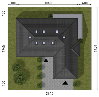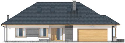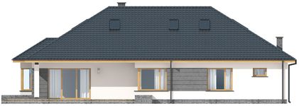 Graficzne opracowanie rzutów poglądowych widocznych na karcie projektu zostało wykonane przez Extradom.pl. Prezentowane przez Extradom.pl wizualizacje wykonane zostały przez autora projektu i należy poczytywać je jedynie za przykład i propozycję wykończenia, wizję architektoniczną autora projektu. Ostateczne wykończenie budynku może nastąpić na wiele sposobów. Szczegółowe rozwiązania zastosowane w oferowanej dokumentacji - w tym również ilość, lokalizacje i wygląd okien, drzwi, kominów - mogą w niewielkim stopniu różnić się od prezentowanej wizualizacji budynku.