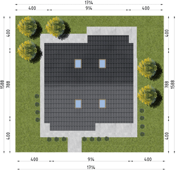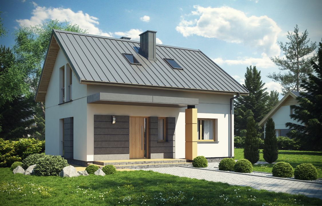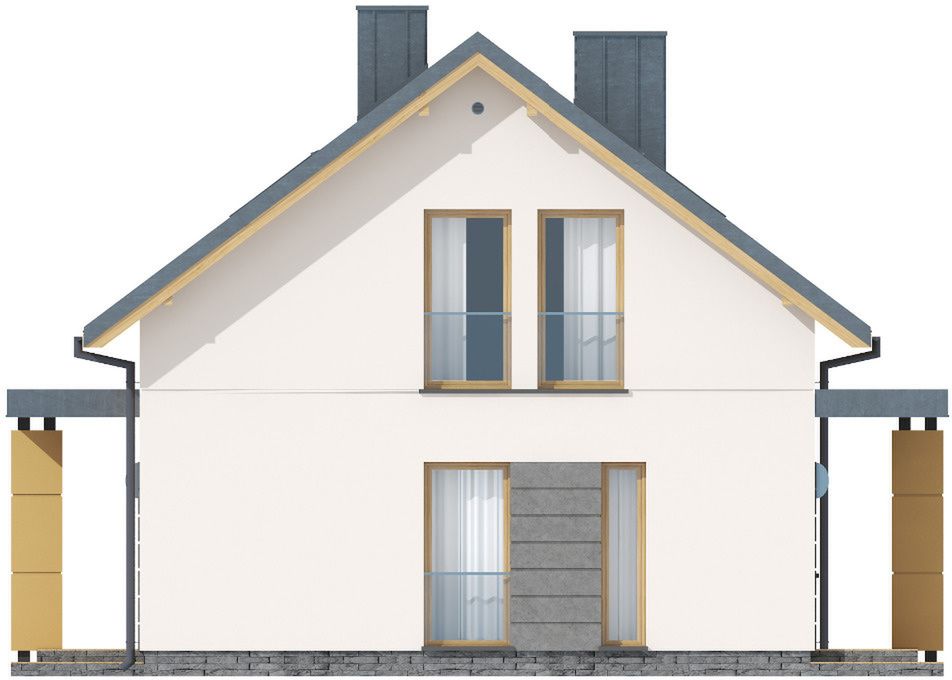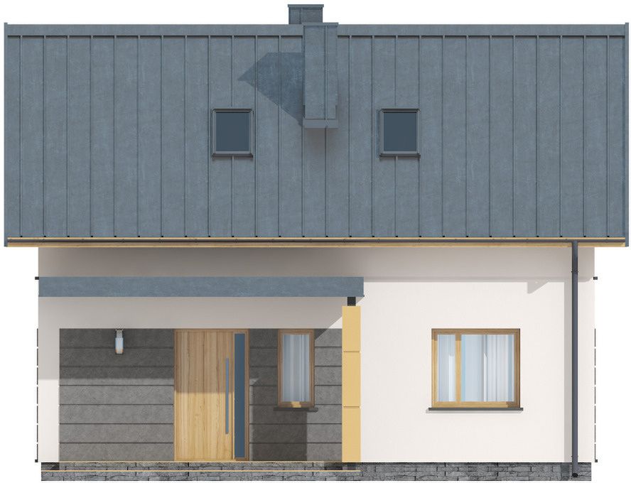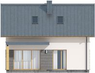 Graficzne opracowanie rzutów poglądowych widocznych na karcie projektu zostało wykonane przez Extradom.pl. Prezentowane przez Extradom.pl wizualizacje wykonane zostały przez autora projektu i należy poczytywać je jedynie za przykład i propozycję wykończenia, wizję architektoniczną autora projektu. Ostateczne wykończenie budynku może nastąpić na wiele sposobów. Szczegółowe rozwiązania zastosowane w oferowanej dokumentacji - w tym również ilość, lokalizacje i wygląd okien, drzwi, kominów - mogą w niewielkim stopniu różnić się od prezentowanej wizualizacji budynku.