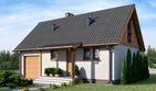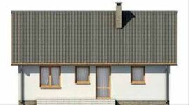 Graficzne opracowanie rzutów poglądowych widocznych na karcie projektu zostało wykonane przez Extradom.pl. Prezentowane przez Extradom.pl wizualizacje wykonane zostały przez autora projektu i należy poczytywać je jedynie za przykład i propozycję wykończenia, wizję architektoniczną autora projektu. Ostateczne wykończenie budynku może nastąpić na wiele sposobów. Szczegółowe rozwiązania zastosowane w oferowanej dokumentacji - w tym również ilość, lokalizacje i wygląd okien, drzwi, kominów - mogą w niewielkim stopniu różnić się od prezentowanej wizualizacji budynku.