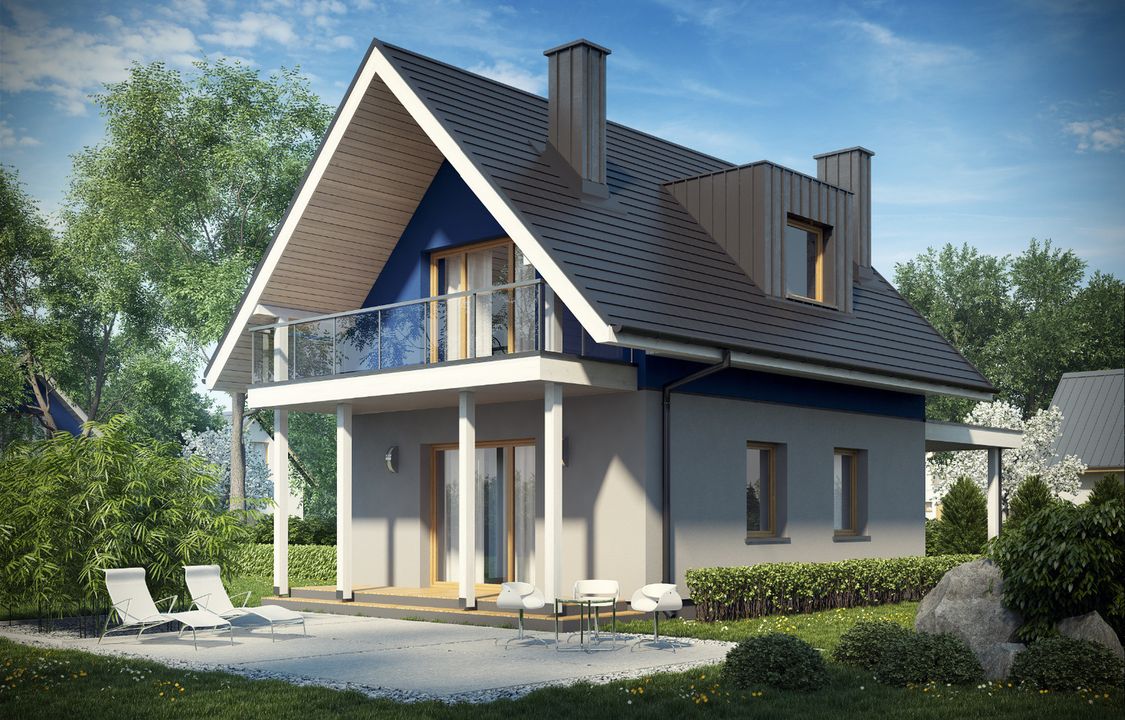Graficzne opracowanie rzutów poglądowych widocznych na karcie projektu zostało wykonane przez Extradom.pl. Prezentowane przez Extradom.pl wizualizacje wykonane zostały przez autora projektu i należy poczytywać je jedynie za przykład i propozycję wykończenia, wizję architektoniczną autora projektu. Ostateczne wykończenie budynku może nastąpić na wiele sposobów. Szczegółowe rozwiązania zastosowane w oferowanej dokumentacji - w tym również ilość, lokalizacje i wygląd okien, drzwi, kominów - mogą w niewielkim stopniu różnić się od prezentowanej wizualizacji budynku.