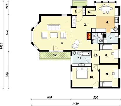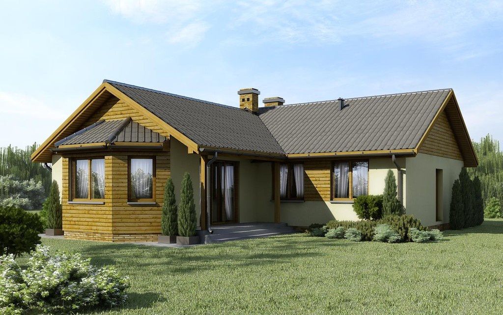 Graficzne opracowanie rzutów poglądowych widocznych na karcie projektu zostało wykonane przez Extradom.pl. Prezentowane przez Extradom.pl wizualizacje wykonane zostały przez autora projektu i należy poczytywać je jedynie za przykład i propozycję wykończenia, wizję architektoniczną autora projektu. Ostateczne wykończenie budynku może nastąpić na wiele sposobów. Szczegółowe rozwiązania zastosowane w oferowanej dokumentacji - w tym również ilość, lokalizacje i wygląd okien, drzwi, kominów - mogą w niewielkim stopniu różnić się od prezentowanej wizualizacji budynku.