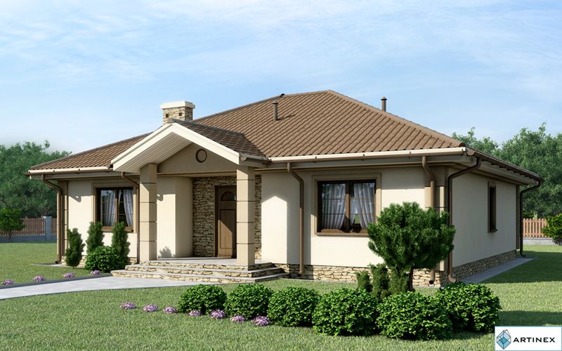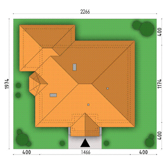 Graficzne opracowanie rzutów poglądowych widocznych na karcie projektu zostało wykonane przez Extradom.pl. Prezentowane przez Extradom.pl wizualizacje wykonane zostały przez autora projektu i należy poczytywać je jedynie za przykład i propozycję wykończenia, wizję architektoniczną autora projektu. Ostateczne wykończenie budynku może nastąpić na wiele sposobów. Szczegółowe rozwiązania zastosowane w oferowanej dokumentacji - w tym również ilość, lokalizacje i wygląd okien, drzwi, kominów - mogą w niewielkim stopniu różnić się od prezentowanej wizualizacji budynku.