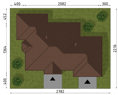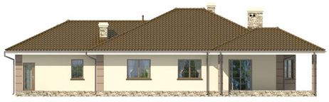 Graficzne opracowanie rzutów poglądowych widocznych na karcie projektu zostało wykonane przez Extradom.pl. Prezentowane przez Extradom.pl wizualizacje wykonane zostały przez autora projektu i należy poczytywać je jedynie za przykład i propozycję wykończenia, wizję architektoniczną autora projektu. Ostateczne wykończenie budynku może nastąpić na wiele sposobów. Szczegółowe rozwiązania zastosowane w oferowanej dokumentacji - w tym również ilość, lokalizacje i wygląd okien, drzwi, kominów - mogą w niewielkim stopniu różnić się od prezentowanej wizualizacji budynku.