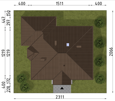 Graficzne opracowanie rzutów poglądowych widocznych na karcie projektu zostało wykonane przez Extradom.pl. Prezentowane przez Extradom.pl wizualizacje wykonane zostały przez autora projektu i należy poczytywać je jedynie za przykład i propozycję wykończenia, wizję architektoniczną autora projektu. Ostateczne wykończenie budynku może nastąpić na wiele sposobów. Szczegółowe rozwiązania zastosowane w oferowanej dokumentacji - w tym również ilość, lokalizacje i wygląd okien, drzwi, kominów - mogą w niewielkim stopniu różnić się od prezentowanej wizualizacji budynku.