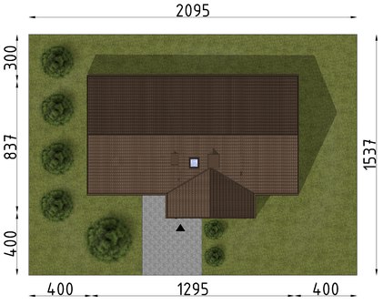 Graficzne opracowanie rzutów poglądowych widocznych na karcie projektu zostało wykonane przez Extradom.pl. Prezentowane przez Extradom.pl wizualizacje wykonane zostały przez autora projektu i należy poczytywać je jedynie za przykład i propozycję wykończenia, wizję architektoniczną autora projektu. Ostateczne wykończenie budynku może nastąpić na wiele sposobów. Szczegółowe rozwiązania zastosowane w oferowanej dokumentacji - w tym również ilość, lokalizacje i wygląd okien, drzwi, kominów - mogą w niewielkim stopniu różnić się od prezentowanej wizualizacji budynku.