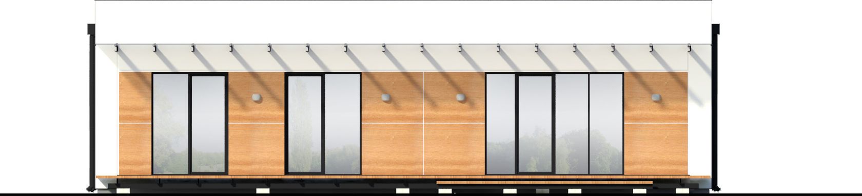 Materiały: Ściany zewnętrzne: murowane z ociepleniem Ściany wewnętrzne: murowane strop: - konstrukcja dachu: - pokrycie dachu: folia dachowa- dach płaski o tradycyjnym układzie warstw elewacja: tynk i płyty HPL, Drewnopodobne lub naturalne drewno