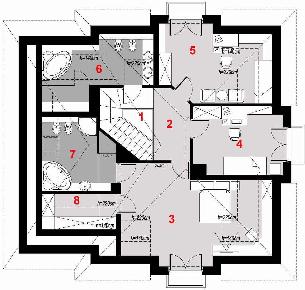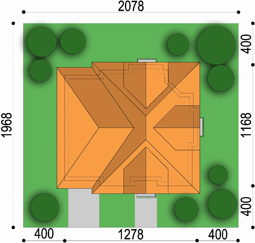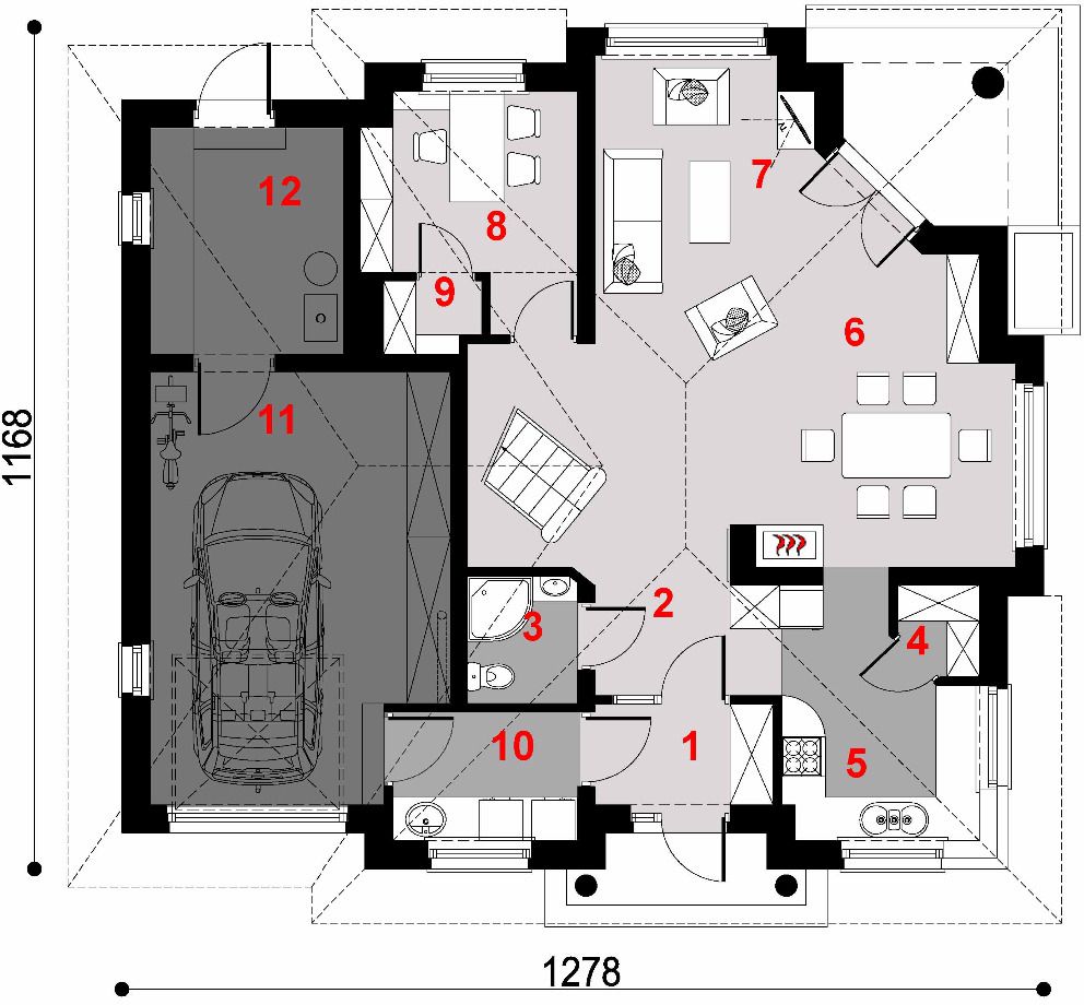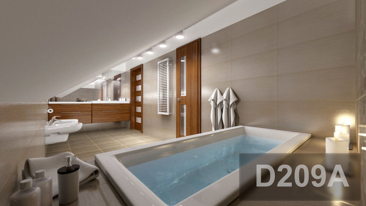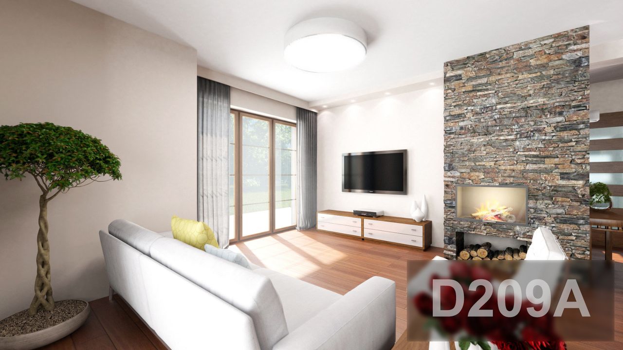 Graficzne opracowanie rzutów poglądowych widocznych na karcie projektu zostało wykonane przez Extradom.pl. Prezentowane przez Extradom.pl wizualizacje wykonane zostały przez autora projektu i należy poczytywać je jedynie za przykład i propozycję wykończenia, wizję architektoniczną autora projektu. Ostateczne wykończenie budynku może nastąpić na wiele sposobów. Szczegółowe rozwiązania zastosowane w oferowanej dokumentacji - w tym również ilość, lokalizacje i wygląd okien, drzwi, kominów - mogą w niewielkim stopniu różnić się od prezentowanej wizualizacji budynku.