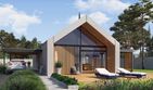Fundamenty: płyta fundamentowa. Ściany zewnętrzne: murowane, dwuwarstwowe, beton komórkowy 24 cm, ocieplenie styropian 22 cm. Ściany wewnętrzne: murowane, beton komórkowy 12 cm. Strop: strop gęstożebrowy Teriva. Dach: konstrukcja drewniana, ocieplenie wełna mineralna 30 cm, krycie dachu: dachówka ceramiczna lub cementowa płaska w kolorze szarym, więźba dachowa dostępna również w systemie prefabrykacji drewnianej. Ogrzewanie: powietrzna pompa ciepła, rozprowadzenie ciepła: płyta grzejna lub inny system ogrzewania podłogowego. Wentylacja: wentylacja mechaniczna nawiewno-wywiewna z odzyskiem ciepła. Dodatkowo: panele fotowoltaiczne, stacja uzdatniania wody, gniazdo instalacji elektrycznej do ładowania auta. Elewacje: płytki elewacyjne klinkierowe w kolorze dachówki klinkierowej – szare; okładzina drewniana wg technologii montażu i barwienia drewna wybranego producenta; rekomendowany kolor okładziny drewnianej: modrzew syberyjski lub cedr kanadyjski, ułożenie desek pionowe; blacha tytanowo-cynkowa w kolorze współgrającym z kolorem okładziny klinkierowej. Stolarka: aluminiowa Reynaers, drewniana lub PVC, drzwi podnoszono-przesuwne typu HS oraz fasada aluminiowo-szklana, drzwi wejściowe kolorystycznie dopasowane do systemu okiennego, żaluzje przeciwsłoneczne w systemie współgrającym z systemem okien. Okna połaciowe: rozwiązania technologiczne, świetliki tunelowe i wyłaz dachowy dopasowane do systemu pokrycia dachowego. Otoczenie: płyty tarasowe i kostka betonowa, system tarasowy - deska kompozytowa lub drewno naturalne w kolorze współgrającym z elewacją.
