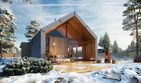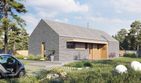 Fundamenty: płyta fundamentowa. Ściany zewnętrzne: murowane, dwuwarstwowe, beton komórkowy 24 cm, ocieplenie styropian 16 cm. Ściany wewnętrzne: murowane, beton komórkowy 12 cm. Strop: strop gęstożebrowy Teriva. Dach: konstrukcja drewniana, ocieplenie wełna mineralna 30 cm, krycie dachu: dachówka klinkierowa w kolorze płytek elewacyjnych, więźba dachowa dostępna również w systemie prefabrykacji drewnianej. Ogrzewanie: powietrzna pompa ciepła, rozprowadzenie ciepła: płyta grzejna lub inny system ogrzewania podłogowego. Wentylacja: wentylacja mechaniczna nawiewno-wywiewna z odzyskiem ciepła. Dodatkowo: panele fotowoltaiczne, stacja uzdatniania wody, gniazdo instalacji elektrycznej do ładowania auta. Elewacje: płytki elewacyjne klinkierowe w kolorze szarym, okładzina drewniana wg technologii montażu i barwienia drewna wybranego producenta; rekomendowany kolor okładziny drewnianej: cedr kanadyjski, ułożenie desek pionowe, wykończenie ściany szczytowej: blacha tytanowo-cynkowa w kolorze szarym. Stolarka: aluminiowa Reynaers lub drewniana, PVC, drzwi podnoszono-przesuwne typu HS oraz fasada aluminiowo-szklana, drzwi wejściowe kolorystycznie dopasowane do systemu okiennego. Okna połaciowe: rozwiązania technologiczne i wyłaz dachowy dopasowane do systemu pokrycia dachowego. Otoczenie: płyty tarasowe i kostka betonowa, system tarasowy - deska kompozytowa lub drewno naturalne w kolorze współgrającym z elewacją.