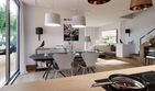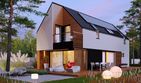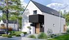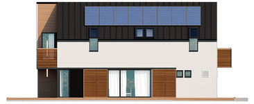 Fundamenty: płyta fundamentowa. Ściany zewnętrzne: murowane, dwuwarstwowe, beton komórkowy 24 cm, ocieplenie styropian 20 cm. Ściany wewnętrzne: murowane, beton komórkowy 12 cm. Strop: międzypiętrowy gęstożebrowy Teriva. Dach: konstrukcja drewniana, ocieplenie wełna mineralna 30 cm, krycie dachu: blacha na rąbek stojący w kolorze grafitowym. Inne: schody wewnętrzne drewniane. Ogrzewanie: powietrzna pompa ciepła, rozprowadzenie ciepła: parter - płyta grzejna jako system ogrzewania podłogowego, poddasze - ogrzewanie podłogowe. Wentylacja: wentylacja mechaniczna nawiewno-wywiewna z odzyskiem ciepła. Dodatkowo: panele fotowoltaiczne, stacja uzdatniania wody, gniazdo instalacji elektrycznej do ładowania auta. Elewacje: tynk cienkowarstwowy mineralny w kolorze białym i antracytowym wg palety kolorów wybranego producenta, okładzina drewniana wg technologii montażu i barwienia drewna wybranego producenta; rekomendowany kolor okładziny drewnianej: modrzew syberyjski, ułożenie desek poziome. Stolarka: drewniana, PVC lub aluminiowa, drzwi podnoszono-przesuwne typu HS, drzwi wejściowe kolorystycznie dopasowane do systemu okiennego, żaluzje przeciwsłoneczne w systemie współgrającym z systemem okien. Okna połaciowe: rozwiązania technologiczne i wyłaz dachowy dopasowane do systemu pokrycia dachowego. Otoczenie: płyty tarasowe i kostka betonowa, system tarasowy - deska kompozytowa lub drewno naturalne w kolorze współgrającym z elewacją.