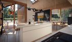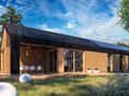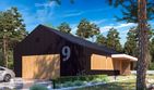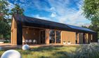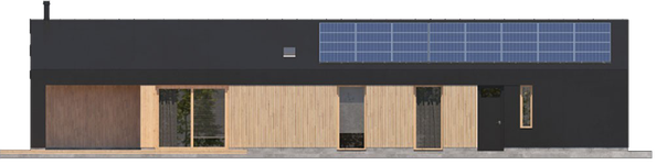 Fundamenty: ławy fundamentowe. Ściany zewnętrzne: murowane, dwuwarstwowe, beton komórkowy 24 cm, ocieplenie styropian 20 cm. Ściany wewnętrzne: nośne i działowe murowane, beton komórkowy 24 cm i 12 cm. Strop: strop gęstożebrowy Teriva. Dach: konstrukcja drewniana, ocieplenie wełna mineralna 30 cm, krycie dachu: blacha na rąbek stojący w kolorze antracytowym, więźba dachowa dostępna również w systemie prefabrykacji drewnianej. Ogrzewanie: powietrzna pompa ciepła, rozprowadzenie ciepła: ogrzewanie podłogowe. Wentylacja: wentylacja mechaniczna nawiewno-wywiewna z odzyskiem ciepła. Dodatkowo: panele fotowoltaiczne, stacja uzdatniania wody, gniazdo instalacji elektrycznej do ładowania auta. Elewacje: blacha tytanowo-cynkowa w kolorze antracytowym, okładzina drewniana wg technologii montażu i barwienia drewna wybranego producenta; rekomendowany kolor okładziny drewnianej: modrzew syberyjski lub cedr kanadyjski, ułożenie desek pionowe. Stolarka: drewniana, PVC lub aluminiowa, drzwi podnoszono-przesuwne typu HS, drzwi wejściowe kolorystycznie dopasowane do systemu okiennego. Okna połaciowe: rozwiązania technologiczne, świetliki tunelowe i wyłaz dachowy dopasowane do systemu pokrycia dachowego. Otoczenie: płyty tarasowe i kostka betonowa, system tarasowy - deska kompozytowa lub drewno naturalne w kolorze współgrającym z elewacją.