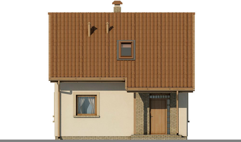 Graficzne opracowanie rzutów poglądowych widocznych na karcie projektu zostało wykonane przez Extradom.pl. Prezentowane przez Extradom.pl wizualizacje wykonane zostały przez autora projektu i należy poczytywać je jedynie za przykład i propozycję wykończenia, wizję architektoniczną autora projektu. Ostateczne wykończenie budynku może nastąpić na wiele sposobów. Szczegółowe rozwiązania zastosowane w oferowanej dokumentacji - w tym również ilość, lokalizacje i wygląd okien, drzwi, kominów - mogą w niewielkim stopniu różnić się od prezentowanej wizualizacji budynku.