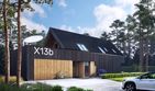 Fundamenty: płyta fundamentowa. Ściany zewnętrzne: murowane, dwuwarstwowe, beton komórkowy 24 cm, ocieplenie styropian 24 cm. Ściany wewnętrzne: działowe murowane, beton komórkowy 12 cm. Strop i stropodach nad garażem: międzypiętrowy gęstożebrowy Teriva, stropodach pełny, ocieplenie wełna mineralna 20 cm. Dach: konstrukcja drewniana, ocieplenie wełna mineralna 30 cm, krycie dachu: blacha trapezowa w kolorze antracytowym. Inne: schody wewnętrzne drewniane. Ogrzewanie: pompa ciepła typu powietrze/woda, rozprowadzenie ciepła - ogrzewanie podłogowe. Wentylacja: wentylacja mechaniczna nawiewno-wywiewna z odzyskiem ciepła. Dodatkowo: panele fotowoltaiczne, stacja uzdatniania wody, gniazdo instalacji elektrycznej do ładowania auta. Elewacje: okładzina drewniana wg technologii montażu i barwienia drewna wybranego producenta; rekomendowany kolor okładziny drewnianej: okładzina drewniana czarna - deski palone świerkowe lub modrzewiowe, jasne drewno - modrzew syberyjski lub świerk skandynawski, ułożenie desek pionowe. Stolarka: drewniana, PVC lub aluminiowa, drzwi podnoszono-przesuwne typu HS oraz fasada aluminiowo-szklana, drzwi wejściowe i brama garażowa kolorystycznie dopasowane do systemu okiennego; żaluzje przeciwsłoneczne w systemie współgrającym z systemem okien. Okna połaciowe: rozwiązania technologiczne dopasowane do systemu pokrycia dachowego. Otoczenie: płyty tarasowe i kostka betonowa, system tarasowy - deska kompozytowa lub drewno naturalne w kolorze współgrającym z elewacją.
