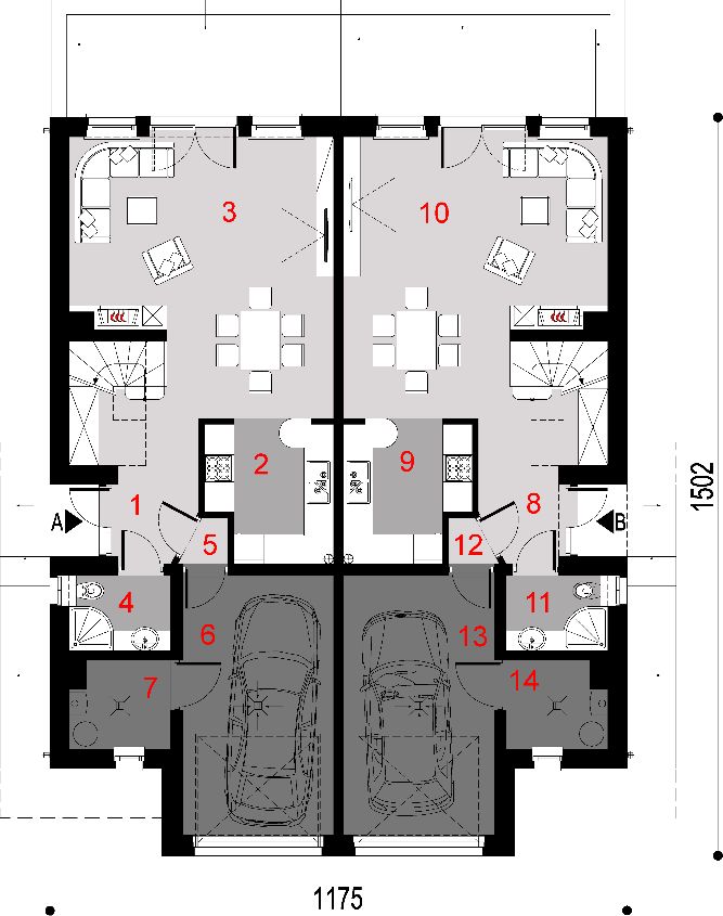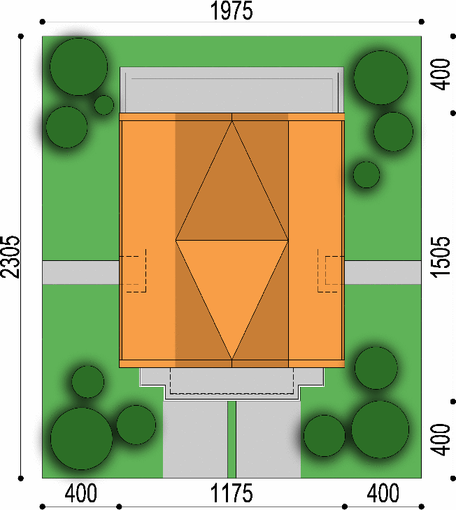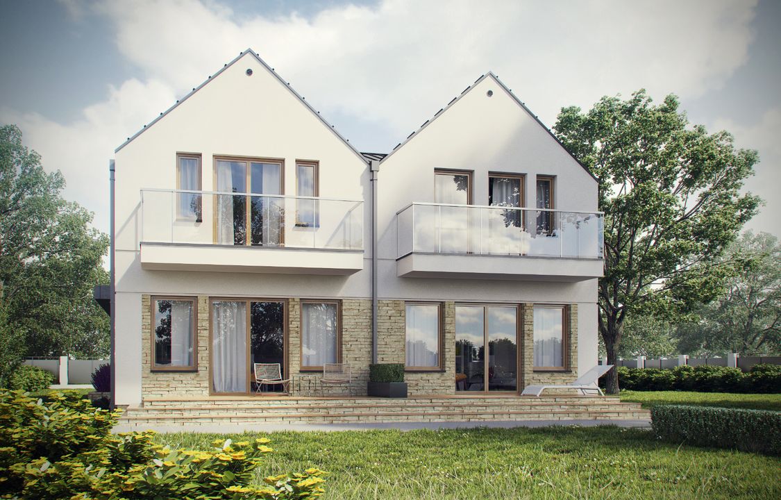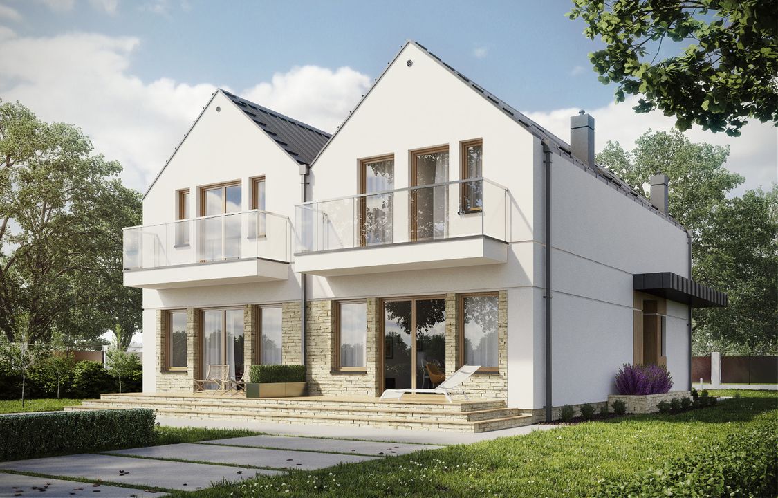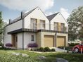 Graficzne opracowanie rzutów poglądowych widocznych na karcie projektu zostało wykonane przez Extradom.pl. Prezentowane przez Extradom.pl wizualizacje wykonane zostały przez autora projektu i należy poczytywać je jedynie za przykład i propozycję wykończenia, wizję architektoniczną autora projektu. Ostateczne wykończenie budynku może nastąpić na wiele sposobów. Szczegółowe rozwiązania zastosowane w oferowanej dokumentacji - w tym również ilość, lokalizacje i wygląd okien, drzwi, kominów - mogą w niewielkim stopniu różnić się od prezentowanej wizualizacji budynku.