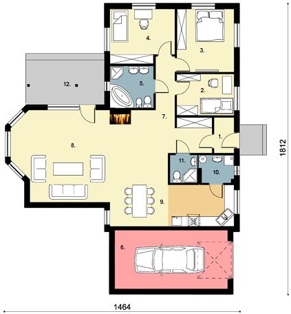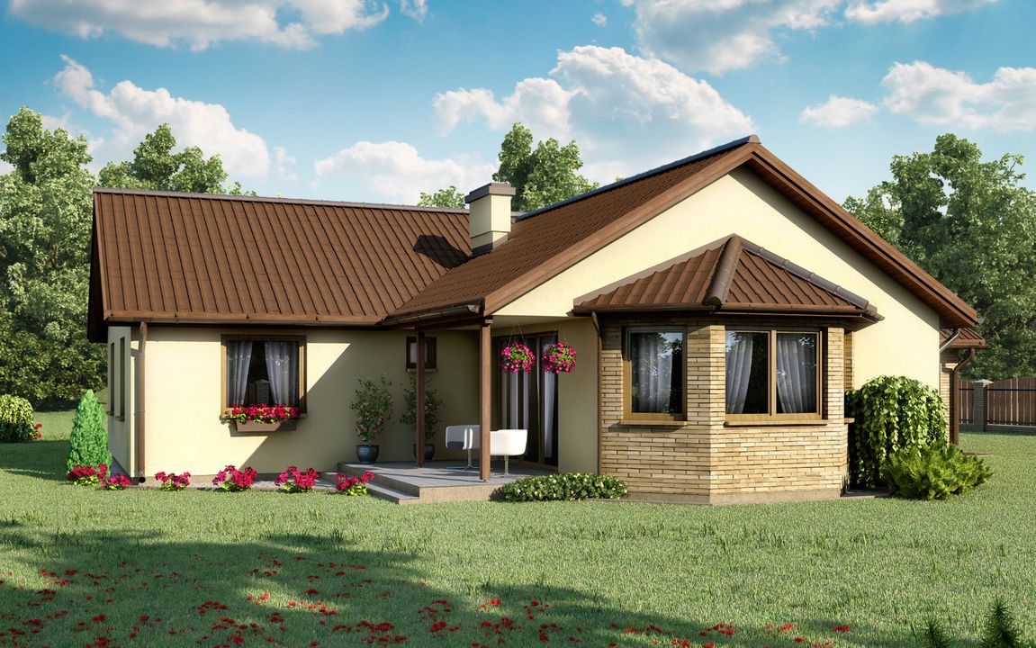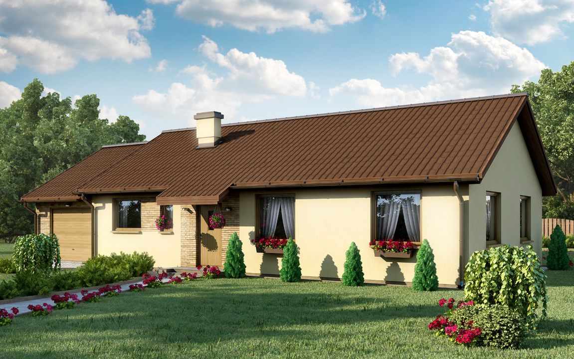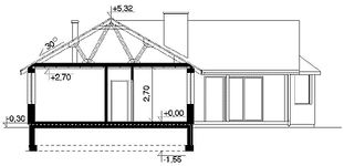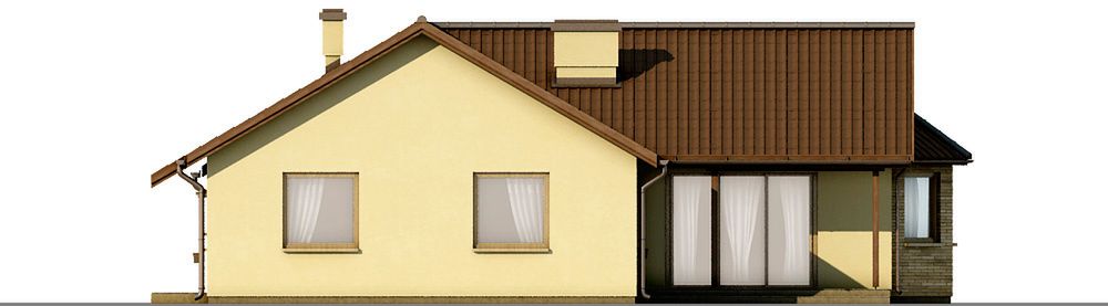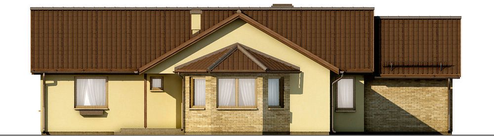 Graficzne opracowanie rzutów poglądowych widocznych na karcie projektu zostało wykonane przez Extradom.pl. Prezentowane przez Extradom.pl wizualizacje wykonane zostały przez autora projektu i należy poczytywać je jedynie za przykład i propozycję wykończenia, wizję architektoniczną autora projektu. Ostateczne wykończenie budynku może nastąpić na wiele sposobów. Szczegółowe rozwiązania zastosowane w oferowanej dokumentacji - w tym również ilość, lokalizacje i wygląd okien, drzwi, kominów - mogą w niewielkim stopniu różnić się od prezentowanej wizualizacji budynku.