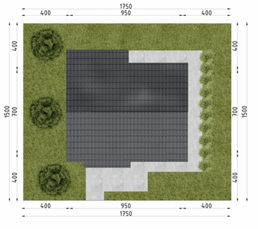 Graficzne opracowanie rzutów poglądowych widocznych na karcie projektu zostało wykonane przez Extradom.pl. Prezentowane przez Extradom.pl wizualizacje wykonane zostały przez autora projektu i należy poczytywać je jedynie za przykład i propozycję wykończenia, wizję architektoniczną autora projektu. Ostateczne wykończenie budynku może nastąpić na wiele sposobów. Szczegółowe rozwiązania zastosowane w oferowanej dokumentacji - w tym również ilość, lokalizacje i wygląd okien, drzwi, kominów - mogą w niewielkim stopniu różnić się od prezentowanej wizualizacji budynku.