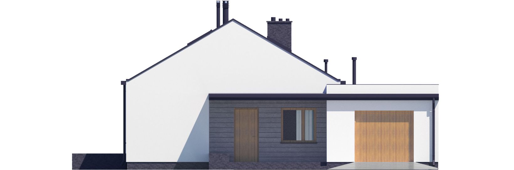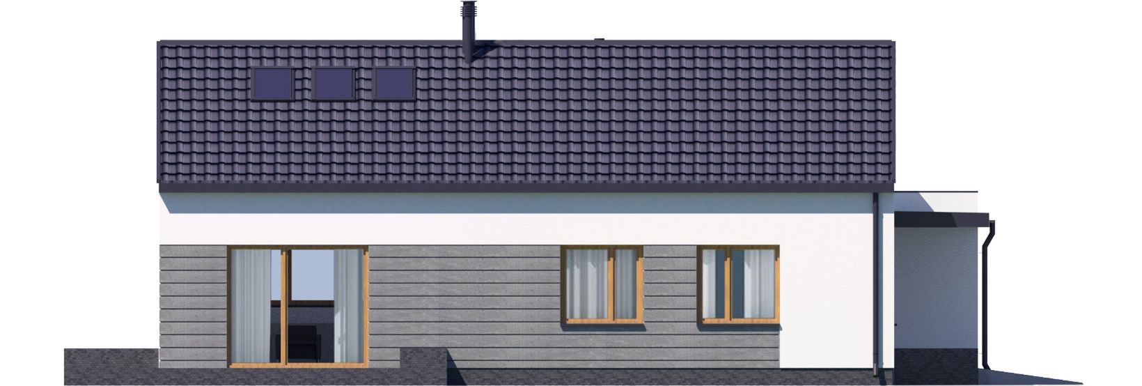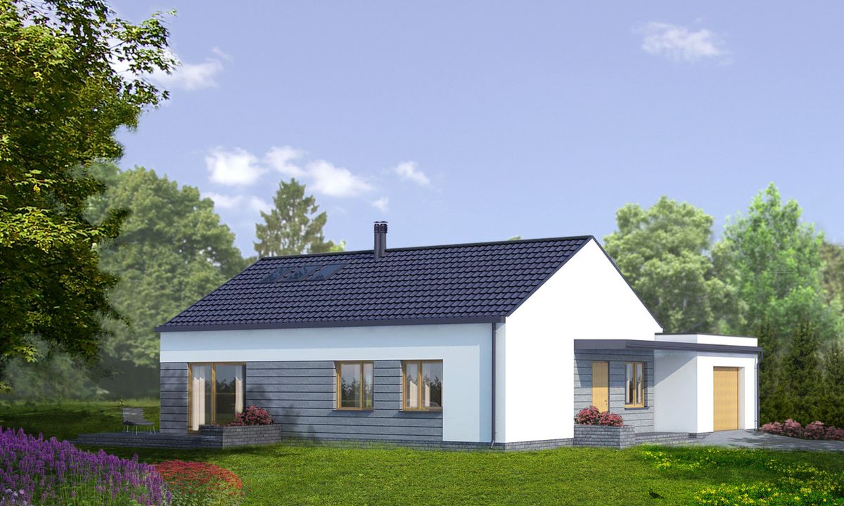 Graficzne opracowanie rzutów poglądowych widocznych na karcie projektu zostało wykonane przez Extradom.pl. Prezentowane przez Extradom.pl wizualizacje wykonane zostały przez autora projektu i należy poczytywać je jedynie za przykład i propozycję wykończenia, wizję architektoniczną autora projektu. Ostateczne wykończenie budynku może nastąpić na wiele sposobów. Szczegółowe rozwiązania zastosowane w oferowanej dokumentacji - w tym również ilość, lokalizacje i wygląd okien, drzwi, kominów - mogą w niewielkim stopniu różnić się od prezentowanej wizualizacji budynku.