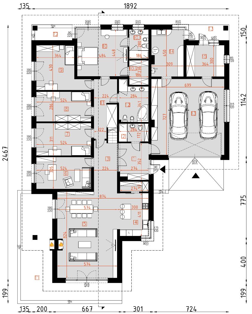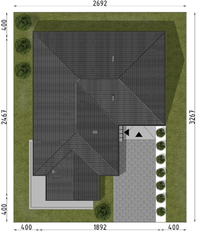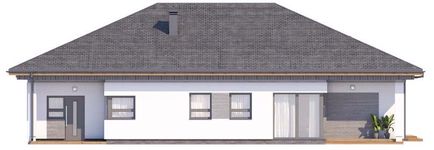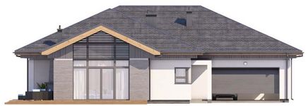Graficzne opracowanie rzutów poglądowych widocznych na karcie projektu zostało wykonane przez Extradom.pl. Prezentowane przez Extradom.pl wizualizacje wykonane zostały przez autora projektu i należy poczytywać je jedynie za przykład i propozycję wykończenia, wizję architektoniczną autora projektu. Ostateczne wykończenie budynku może nastąpić na wiele sposobów. Szczegółowe rozwiązania zastosowane w oferowanej dokumentacji - w tym również ilość, lokalizacje i wygląd okien, drzwi, kominów - mogą w niewielkim stopniu różnić się od prezentowanej wizualizacji budynku.