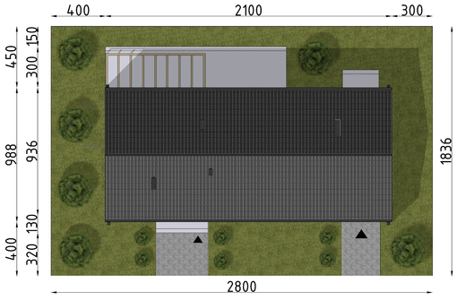 Graficzne opracowanie rzutów poglądowych widocznych na karcie projektu zostało wykonane przez Extradom.pl. Prezentowane przez Extradom.pl wizualizacje wykonane zostały przez autora projektu i należy poczytywać je jedynie za przykład i propozycję wykończenia, wizję architektoniczną autora projektu. Ostateczne wykończenie budynku może nastąpić na wiele sposobów. Szczegółowe rozwiązania zastosowane w oferowanej dokumentacji - w tym również ilość, lokalizacje i wygląd okien, drzwi, kominów - mogą w niewielkim stopniu różnić się od prezentowanej wizualizacji budynku.