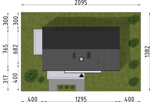 Graficzne opracowanie rzutów poglądowych widocznych na karcie projektu zostało wykonane przez Extradom.pl. Prezentowane przez Extradom.pl wizualizacje wykonane zostały przez autora projektu i należy poczytywać je jedynie za przykład i propozycję wykończenia, wizję architektoniczną autora projektu. Ostateczne wykończenie budynku może nastąpić na wiele sposobów. Szczegółowe rozwiązania zastosowane w oferowanej dokumentacji - w tym również ilość, lokalizacje i wygląd okien, drzwi, kominów - mogą w niewielkim stopniu różnić się od prezentowanej wizualizacji budynku.