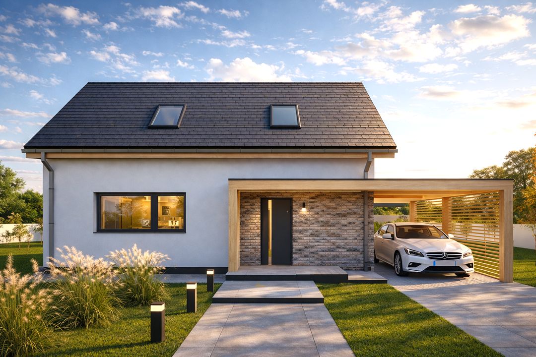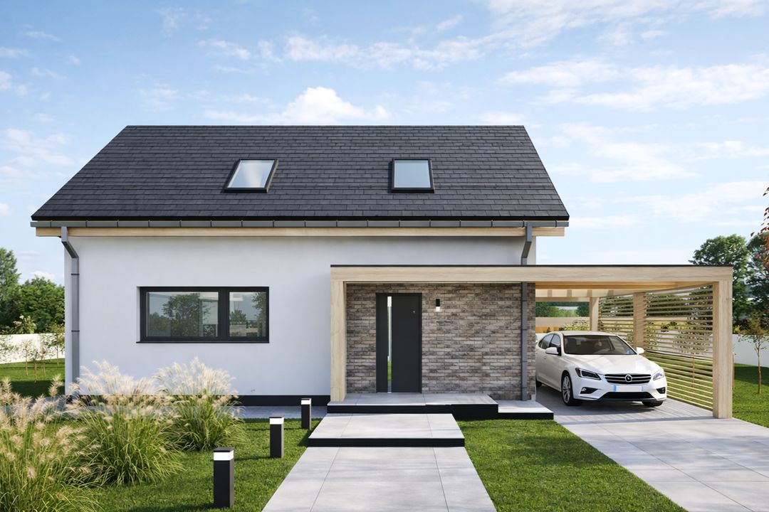 Odkryj innowacyjne rozwiązanie, które łączy funkcjonalność nowoczesnego dachu i fotowoltaiki w jednym. Kupując projekt domu otrzymasz bezpłatny poradnik SunRoof – Dach solarny 2 w 1, dzięki któremu dowiesz się, jak w prosty sposób zaoszczędzić na energii i zadbać o środowisko. Zainspiruj się nowoczesnymi technologiami!