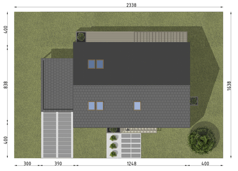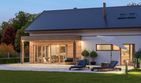 Graficzne opracowanie rzutów poglądowych widocznych na karcie projektu zostało wykonane przez Extradom.pl. Prezentowane przez Extradom.pl wizualizacje wykonane zostały przez autora projektu i należy poczytywać je jedynie za przykład i propozycję wykończenia, wizję architektoniczną autora projektu. Ostateczne wykończenie budynku może nastąpić na wiele sposobów. Szczegółowe rozwiązania zastosowane w oferowanej dokumentacji - w tym również ilość, lokalizacje i wygląd okien, drzwi, kominów - mogą w niewielkim stopniu różnić się od prezentowanej wizualizacji budynku.