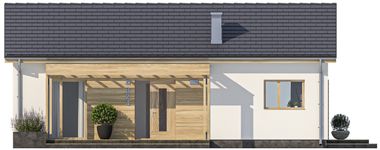 Graficzne opracowanie rzutów poglądowych widocznych na karcie projektu zostało wykonane przez Extradom.pl. Prezentowane przez Extradom.pl wizualizacje wykonane zostały przez autora projektu i należy poczytywać je jedynie za przykład i propozycję wykończenia, wizję architektoniczną autora projektu. Ostateczne wykończenie budynku może nastąpić na wiele sposobów. Szczegółowe rozwiązania zastosowane w oferowanej dokumentacji - w tym również ilość, lokalizacje i wygląd okien, drzwi, kominów - mogą w niewielkim stopniu różnić się od prezentowanej wizualizacji budynku.