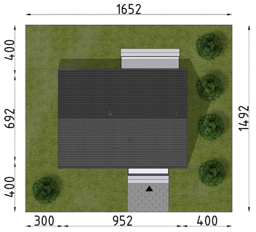 Graficzne opracowanie rzutów poglądowych widocznych na karcie projektu zostało wykonane przez Extradom.pl. Prezentowane przez Extradom.pl wizualizacje wykonane zostały przez autora projektu i należy poczytywać je jedynie za przykład i propozycję wykończenia, wizję architektoniczną autora projektu. Ostateczne wykończenie budynku może nastąpić na wiele sposobów. Szczegółowe rozwiązania zastosowane w oferowanej dokumentacji - w tym również ilość, lokalizacje i wygląd okien, drzwi, kominów - mogą w niewielkim stopniu różnić się od prezentowanej wizualizacji budynku.