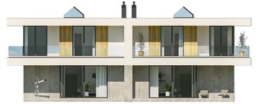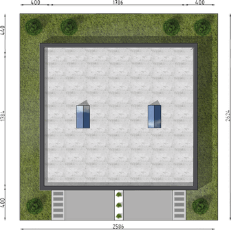 Graficzne opracowanie rzutów poglądowych widocznych na karcie projektu zostało wykonane przez Extradom.pl. Prezentowane przez Extradom.pl wizualizacje wykonane zostały przez autora projektu i należy poczytywać je jedynie za przykład i propozycję wykończenia, wizję architektoniczną autora projektu. Ostateczne wykończenie budynku może nastąpić na wiele sposobów. Szczegółowe rozwiązania zastosowane w oferowanej dokumentacji - w tym również ilość, lokalizacje i wygląd okien, drzwi, kominów - mogą w niewielkim stopniu różnić się od prezentowanej wizualizacji budynku.