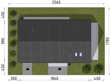 Graficzne opracowanie rzutów poglądowych widocznych na karcie projektu zostało wykonane przez Extradom.pl. Prezentowane przez Extradom.pl wizualizacje wykonane zostały przez autora projektu i należy poczytywać je jedynie za przykład i propozycję wykończenia, wizję architektoniczną autora projektu. Ostateczne wykończenie budynku może nastąpić na wiele sposobów. Szczegółowe rozwiązania zastosowane w oferowanej dokumentacji - w tym również ilość, lokalizacje i wygląd okien, drzwi, kominów - mogą w niewielkim stopniu różnić się od prezentowanej wizualizacji budynku.