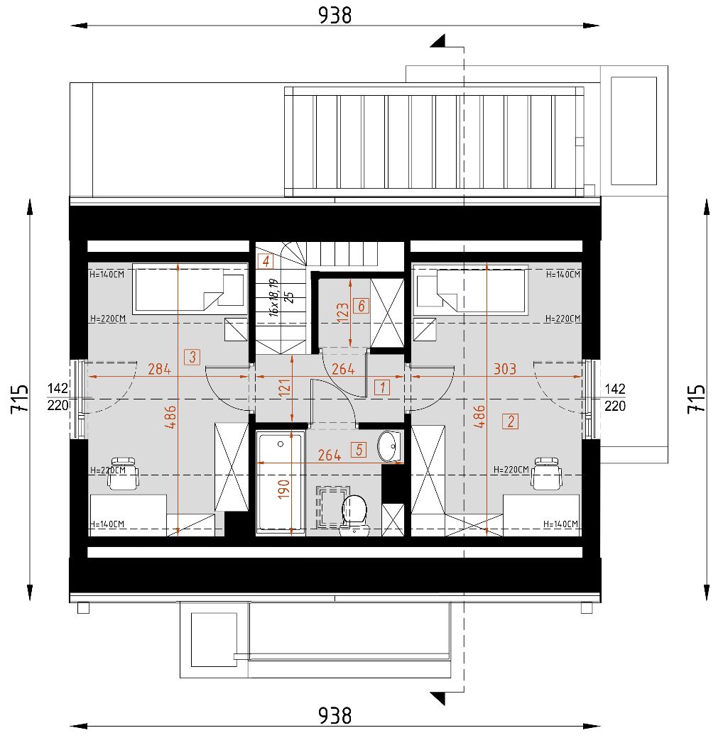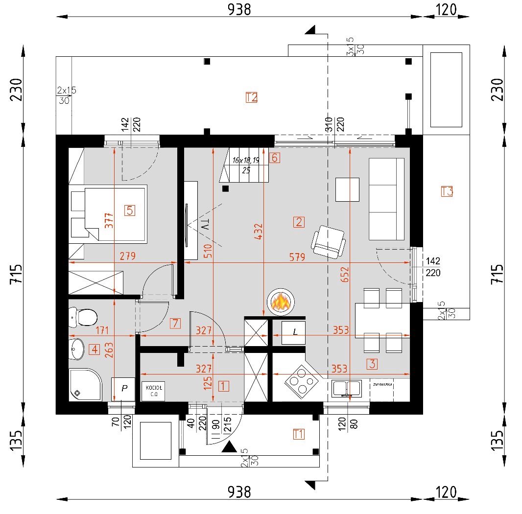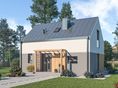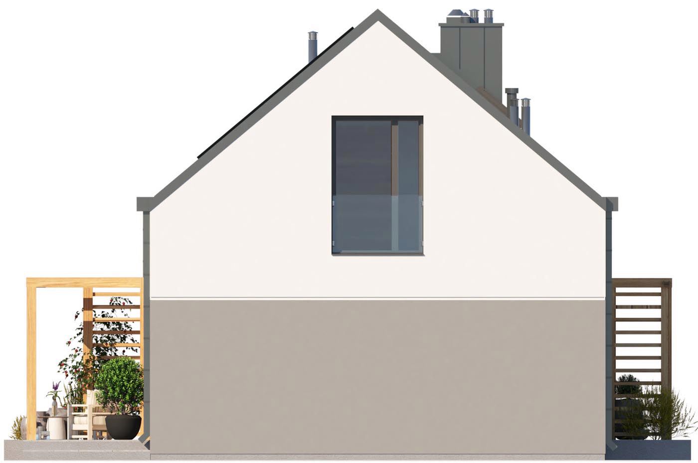 Graficzne opracowanie rzutów poglądowych widocznych na karcie projektu zostało wykonane przez Extradom.pl. Prezentowane przez Extradom.pl wizualizacje wykonane zostały przez autora projektu i należy poczytywać je jedynie za przykład i propozycję wykończenia, wizję architektoniczną autora projektu. Ostateczne wykończenie budynku może nastąpić na wiele sposobów. Szczegółowe rozwiązania zastosowane w oferowanej dokumentacji - w tym również ilość, lokalizacje i wygląd okien, drzwi, kominów - mogą w niewielkim stopniu różnić się od prezentowanej wizualizacji budynku.
