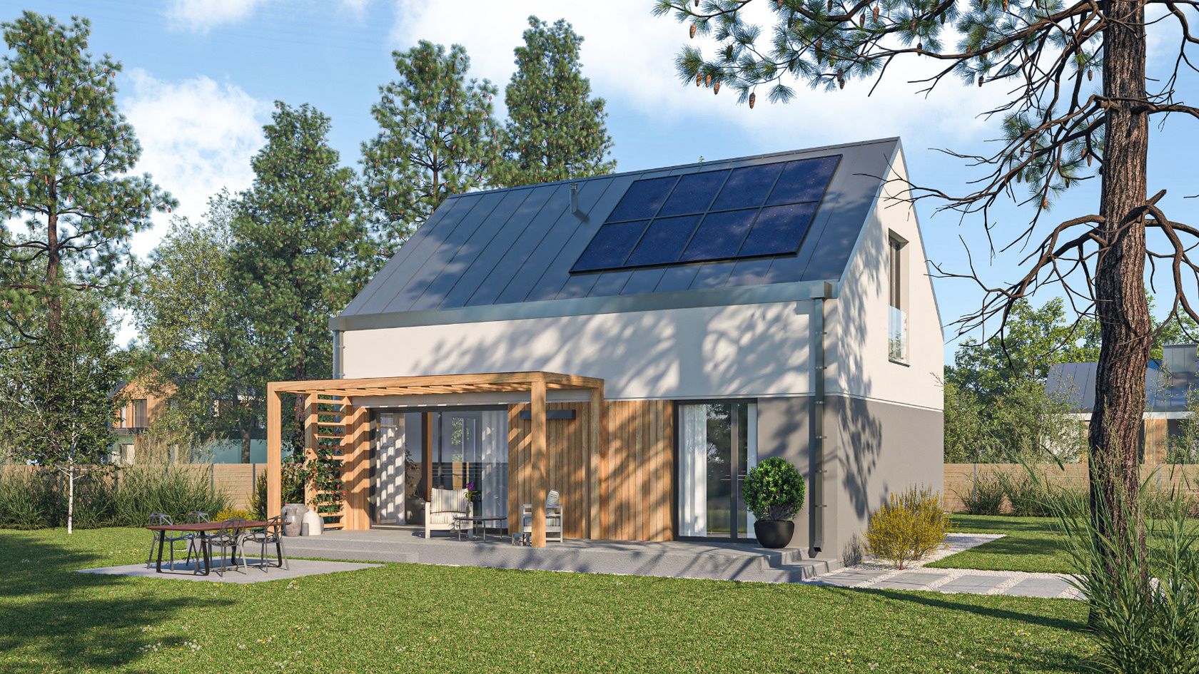 Odkryj innowacyjne rozwiązanie, które łączy funkcjonalność nowoczesnego dachu i fotowoltaiki w jednym. Kupując projekt domu otrzymasz bezpłatny poradnik SunRoof – Dach solarny 2 w 1, dzięki któremu dowiesz się, jak w prosty sposób zaoszczędzić na energii i zadbać o środowisko. Zainspiruj się nowoczesnymi technologiami!