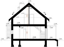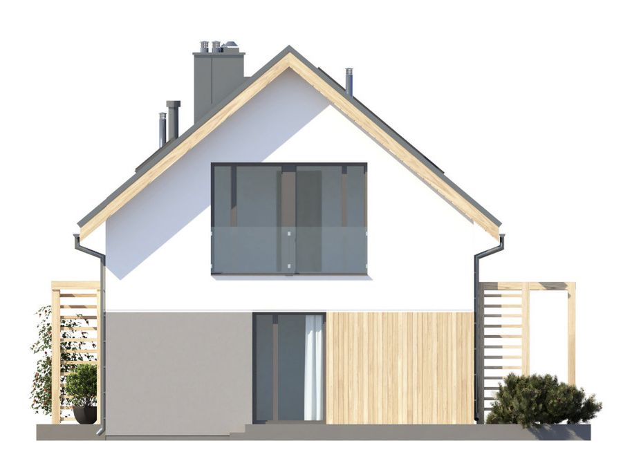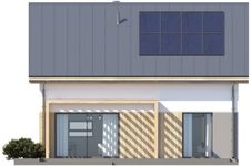 Graficzne opracowanie rzutów poglądowych widocznych na karcie projektu zostało wykonane przez Extradom.pl. Prezentowane przez Extradom.pl wizualizacje wykonane zostały przez autora projektu i należy poczytywać je jedynie za przykład i propozycję wykończenia, wizję architektoniczną autora projektu. Ostateczne wykończenie budynku może nastąpić na wiele sposobów. Szczegółowe rozwiązania zastosowane w oferowanej dokumentacji - w tym również ilość, lokalizacje i wygląd okien, drzwi, kominów - mogą w niewielkim stopniu różnić się od prezentowanej wizualizacji budynku.