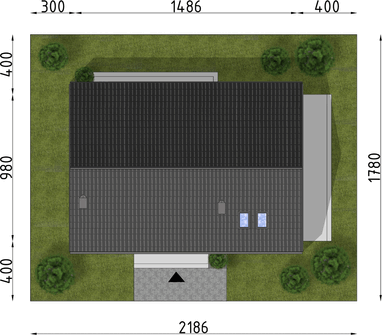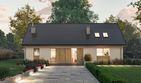 Graficzne opracowanie rzutów poglądowych widocznych na karcie projektu zostało wykonane przez Extradom.pl. Prezentowane przez Extradom.pl wizualizacje wykonane zostały przez autora projektu i należy poczytywać je jedynie za przykład i propozycję wykończenia, wizję architektoniczną autora projektu. Ostateczne wykończenie budynku może nastąpić na wiele sposobów. Szczegółowe rozwiązania zastosowane w oferowanej dokumentacji - w tym również ilość, lokalizacje i wygląd okien, drzwi, kominów - mogą w niewielkim stopniu różnić się od prezentowanej wizualizacji budynku.