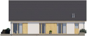 Ściany zewnętrzne: drewniane z ociepleniem. Strop: drewniany - wiązary. Konstrukcja dachu: pas górny wiązara. Pokrycie dachu: blacha ocynkowana na rąbek. Elewacja: tynk cienkowarstwowy, drewno. Ogrzewanie: gazowe EP70 kWh/m2.rok Projekt zgodny z Wt2021.