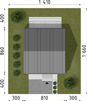 Graficzne opracowanie rzutów poglądowych widocznych na karcie projektu zostało wykonane przez Extradom.pl. Prezentowane przez Extradom.pl wizualizacje wykonane zostały przez autora projektu i należy poczytywać je jedynie za przykład i propozycję wykończenia, wizję architektoniczną autora projektu. Ostateczne wykończenie budynku może nastąpić na wiele sposobów. Szczegółowe rozwiązania zastosowane w oferowanej dokumentacji - w tym również ilość, lokalizacje i wygląd okien, drzwi, kominów - mogą w niewielkim stopniu różnić się od prezentowanej wizualizacji budynku.