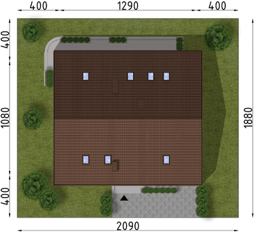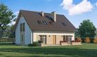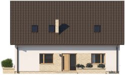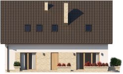 Graficzne opracowanie rzutów poglądowych widocznych na karcie projektu zostało wykonane przez Extradom.pl. Prezentowane przez Extradom.pl wizualizacje wykonane zostały przez autora projektu i należy poczytywać je jedynie za przykład i propozycję wykończenia, wizję architektoniczną autora projektu. Ostateczne wykończenie budynku może nastąpić na wiele sposobów. Szczegółowe rozwiązania zastosowane w oferowanej dokumentacji - w tym również ilość, lokalizacje i wygląd okien, drzwi, kominów - mogą w niewielkim stopniu różnić się od prezentowanej wizualizacji budynku.
