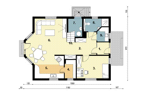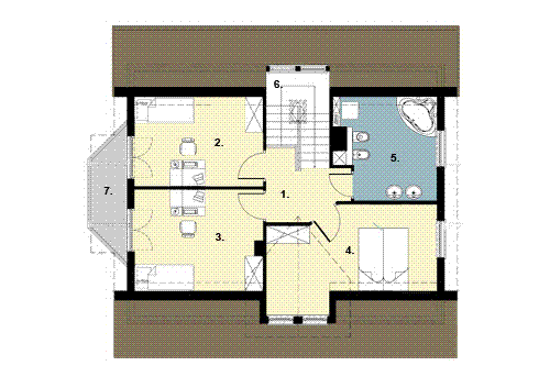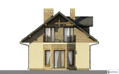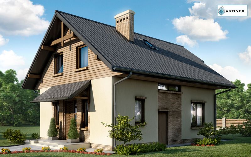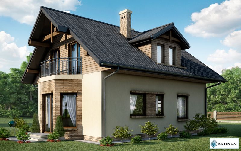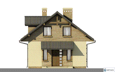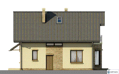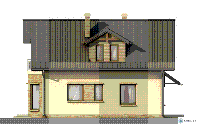 Graficzne opracowanie rzutów poglądowych widocznych na karcie projektu zostało wykonane przez Extradom.pl. Prezentowane przez Extradom.pl wizualizacje wykonane zostały przez autora projektu i należy poczytywać je jedynie za przykład i propozycję wykończenia, wizję architektoniczną autora projektu. Ostateczne wykończenie budynku może nastąpić na wiele sposobów. Szczegółowe rozwiązania zastosowane w oferowanej dokumentacji - w tym również ilość, lokalizacje i wygląd okien, drzwi, kominów - mogą w niewielkim stopniu różnić się od prezentowanej wizualizacji budynku.