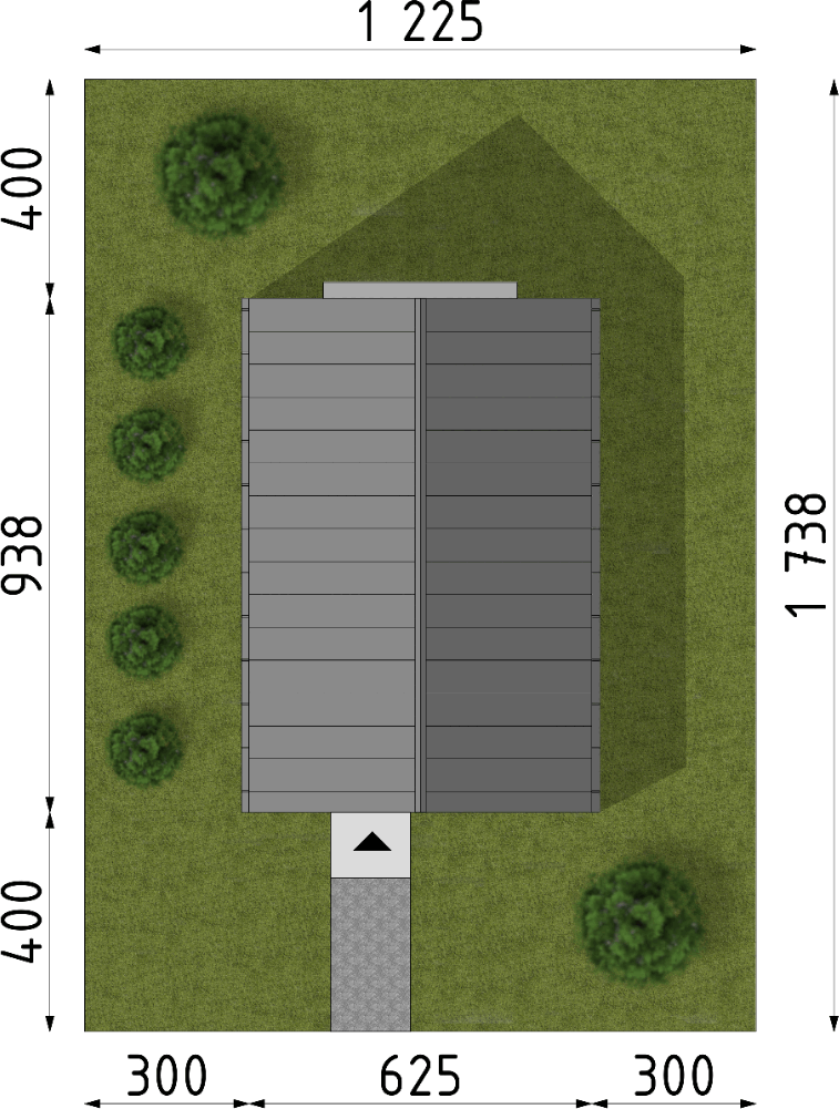 Graficzne opracowanie rzutów poglądowych widocznych na karcie projektu zostało wykonane przez Extradom.pl. Prezentowane przez Extradom.pl wizualizacje wykonane zostały przez autora projektu i należy poczytywać je jedynie za przykład i propozycję wykończenia, wizję architektoniczną autora projektu. Ostateczne wykończenie budynku może nastąpić na wiele sposobów. Szczegółowe rozwiązania zastosowane w oferowanej dokumentacji - w tym również ilość, lokalizacje i wygląd okien, drzwi, kominów - mogą w niewielkim stopniu różnić się od prezentowanej wizualizacji budynku.