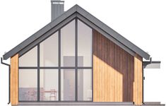 Ściany zewnętrzne: drewniane z ociepleniem. Strop: drewniany - pas dolny dźwigara. Konstrukcja dachu: dźwigar. Pokrycie dachu: blacha na rąbek stojący. Elewacja: panele drewniane lub drewnopodobne. Ogrzewanie: system DGP z kominka na pelet dodatkowo możliwość dokupienia pakietu: ogrzewanie na gaz wentylacja - grawitacyjna.