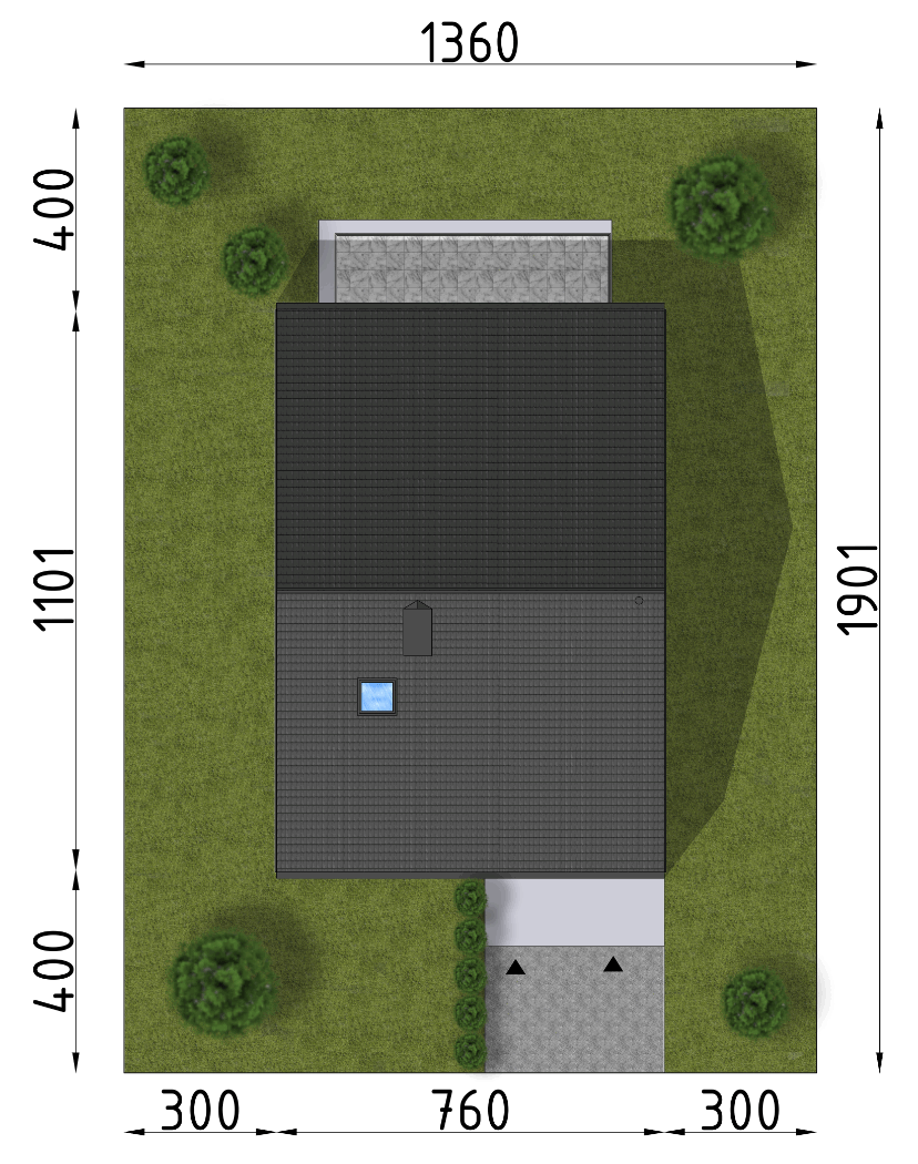 Graficzne opracowanie rzutów poglądowych widocznych na karcie projektu zostało wykonane przez Extradom.pl. Prezentowane przez Extradom.pl wizualizacje wykonane zostały przez autora projektu i należy poczytywać je jedynie za przykład i propozycję wykończenia, wizję architektoniczną autora projektu. Ostateczne wykończenie budynku może nastąpić na wiele sposobów. Szczegółowe rozwiązania zastosowane w oferowanej dokumentacji - w tym również ilość, lokalizacje i wygląd okien, drzwi, kominów - mogą w niewielkim stopniu różnić się od prezentowanej wizualizacji budynku.