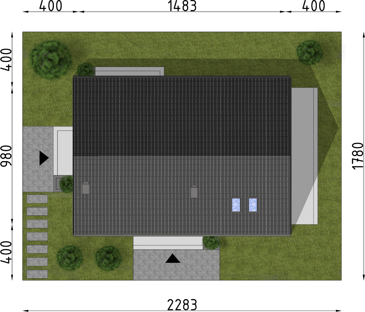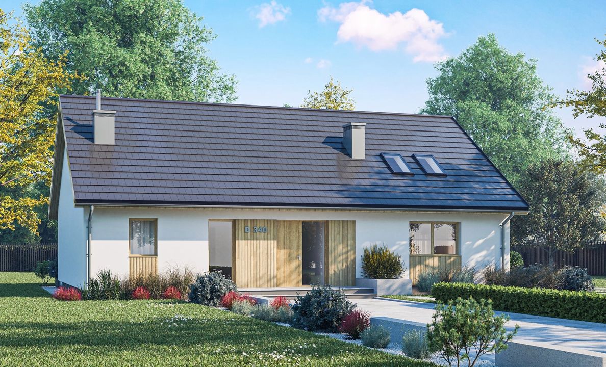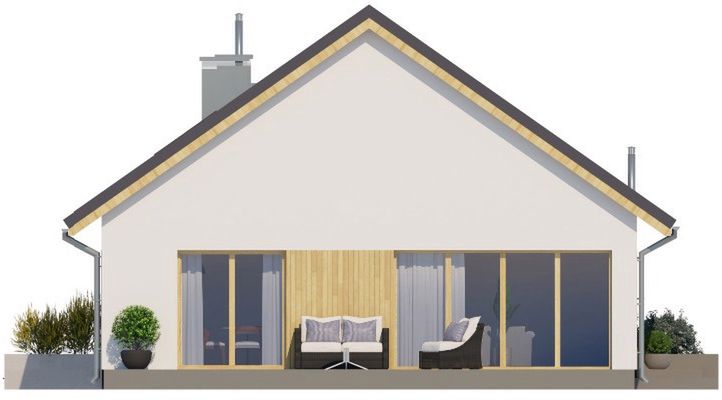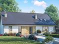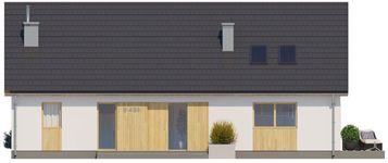 Graficzne opracowanie rzutów poglądowych widocznych na karcie projektu zostało wykonane przez Extradom.pl. Prezentowane przez Extradom.pl wizualizacje wykonane zostały przez autora projektu i należy poczytywać je jedynie za przykład i propozycję wykończenia, wizję architektoniczną autora projektu. Ostateczne wykończenie budynku może nastąpić na wiele sposobów. Szczegółowe rozwiązania zastosowane w oferowanej dokumentacji - w tym również ilość, lokalizacje i wygląd okien, drzwi, kominów - mogą w niewielkim stopniu różnić się od prezentowanej wizualizacji budynku.