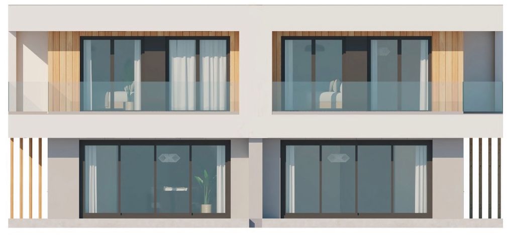 Ściany zewnętrzne: murowane z ociepleniem; strop: żelbetowy; konstrukcja dachu: stropodach kąt nachylenia 2,0 stopnia; pokrycie dachu: stropodach - papa, żwir; elewacja: tynk cienkowarstwowy, drewno elewacyjne, płyty elewacyjne;