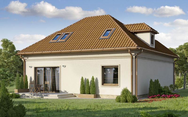 Najważniejszym kryterium przy wyborze odpowiedniego projektu domu było dla nas to, aby budynek posiadał użytkowe poddasze. Jedną z pierwszych propozycji na którą natrafiłam, gdy rozpoczęliśmy poszukiwania był projekt domu z garażem D48 - Mirosław II WAI1205, który bardzo przypadł mi do gustu pod wieloma względami. Nie zdecydowałam się jednak na jego zakup od razu i postanowiłam obejrzeć także inne projekty. Ostatecznie wróciłam do mojego faworyta i wybrałam projekt domu D48 - Mirosław II WAI1205.Współpracujący z nami fachowcy nie mieli żadnych zastrzeżeń do dokumentacji technicznej, a cała inwestycja odbyła się sprawnie i bez problemów. Postanowiliśmy nie zmieniać zalecanej technologii budowy i wszystkie zastosowane przez nas materiały były zgodnie ze wskazaniami architekta. Budynek został postawiony więc z gazobetonowych bloczków Suporex murowanych na klej, strop wykonaliśmy systemem Teriva, zaś dach pokryliśmy blachodachówką. Uważam, że kwota oszacowana w kosztorysie została poprawnie wyliczona i śmiało można się nią sugerować - w naszym przypadku koszty były nawet niższe niż oszacowane.Do projektu domu parterowego z poddaszem użytkowym D48 - Mirosław II WAI1205 wprowadziliśmy małe zmiany. Wysunięty garaż przedzieliliśmy ścianką działową, tworząc w nim osobne, nieduże pomieszczenie, które funkcjonuje jako druga kotłownia. Oprócz tego zrezygnowaliśmy z jednej lukarny, a także wydłużyliśmy tylną połać dachu, aby odpowiednio zacienić pierwotnie niezadaszony taras.Jestem naprawdę zadowolona z wyboru projektu domu D48 - Mirosław II WAI1205, a nowy dom w pełni nas satysfakcjonuje. Przewidziany w nim układ pomieszczeń od początku wydał mi się być funkcjonalny, dlatego też nie musieliśmy wprowadzać w nim żadnych zmian i w dalszym ciągu uważam, że była to słuszna decyzja. Pokoje są obszerne i bardzo ustawne, toteż można je zaaranżować w naprawdę ciekawy sposób nie ujmując im przestronności. Zdecydowaliśmy się na projekt w wersji lustrzanego odbicia - front budynku znajduje się w naszym przypadku od strony południowej, zaś taras mamy na południu. Przy takim usytuowaniu we wszystkich pomieszczeniach mamy wystarczająco jasno i uważam, że w takim przypadku nie ma potrzeby wstawiania dodatkowych okien. Pozdrawiam.